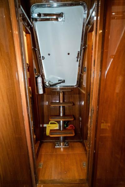 There is also a Bosch washer and dryer and Captain's safe. Aft of the crew area are two storage spaces to port and starboard with :