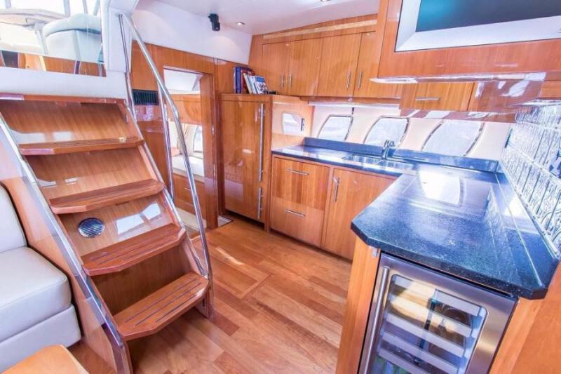 Regal thought of everything when they designed the galley and even added a stainless wine cooler with space for at least 20 bottles.