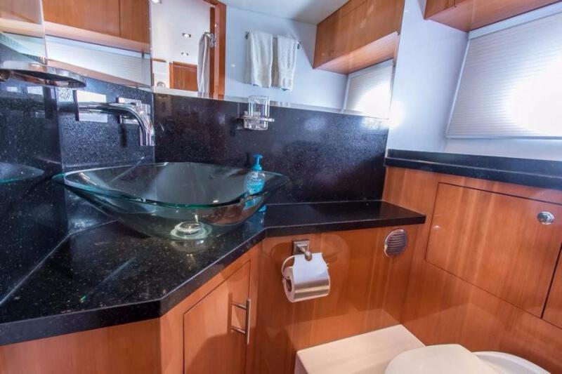 The shower is very large and has its own entrance on the starboard side. To port you will find the head and custom basin sink also with it's own entrance.